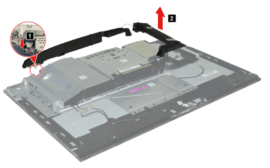 - Detach the speakers connector. Then remove the speakers.