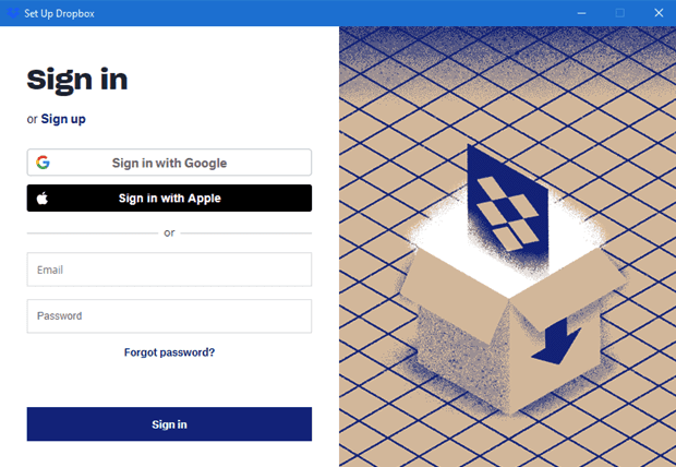 3. Launch the Dropbox app from your Applications folder and sign in with your Dropbox account credentials.