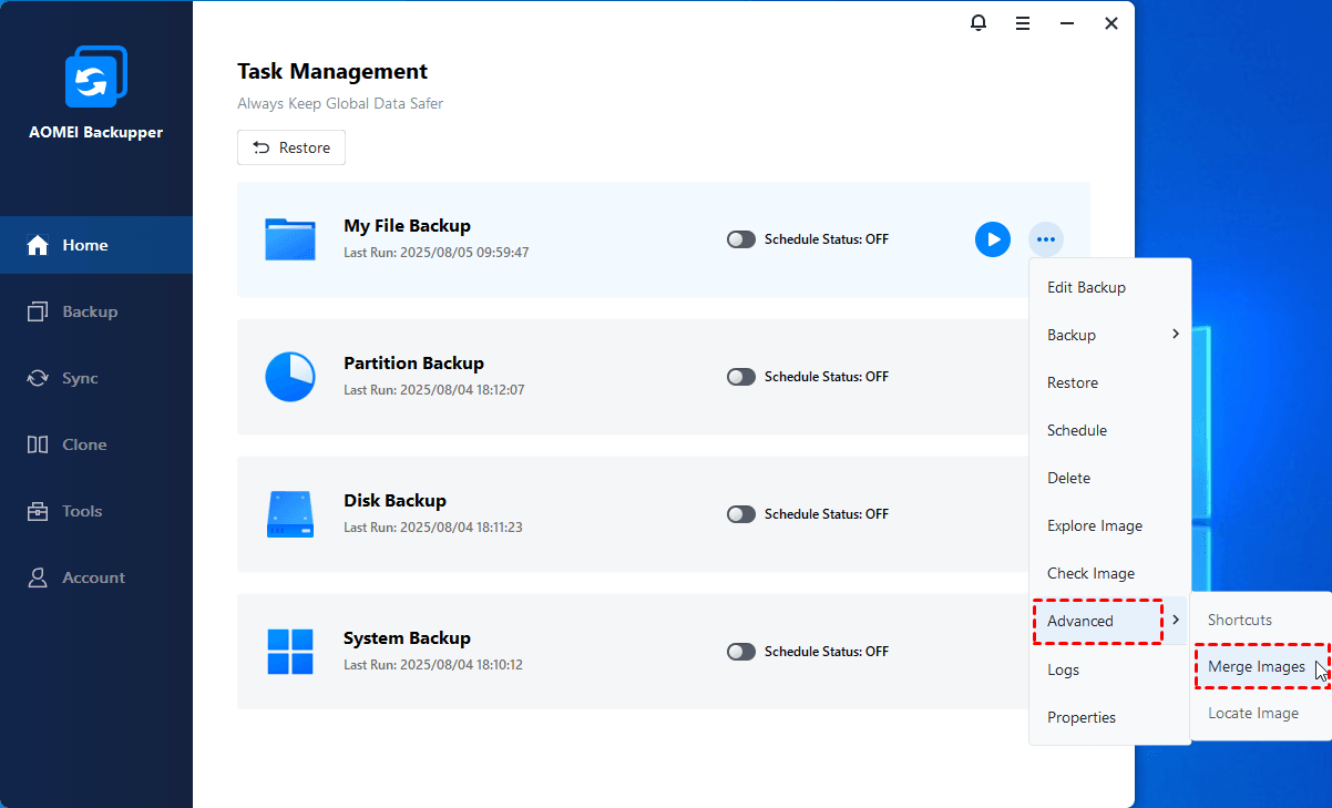 How to Merge Image Files in AOMEI Backupper