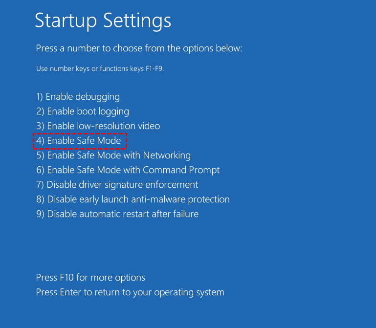 - Press F4 to boot the system into safe mode. After you access to safe mode, restart it and this operation will force your machine to use the correct drivers.