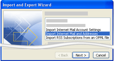 Step 2. Select Import Internet Mail and Addresses, and click on Next.