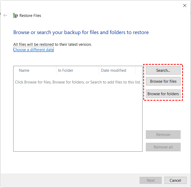 4. Then, click Search, Browse for files or Browse for folders to choose the user profiles for recovery. Then click Next.