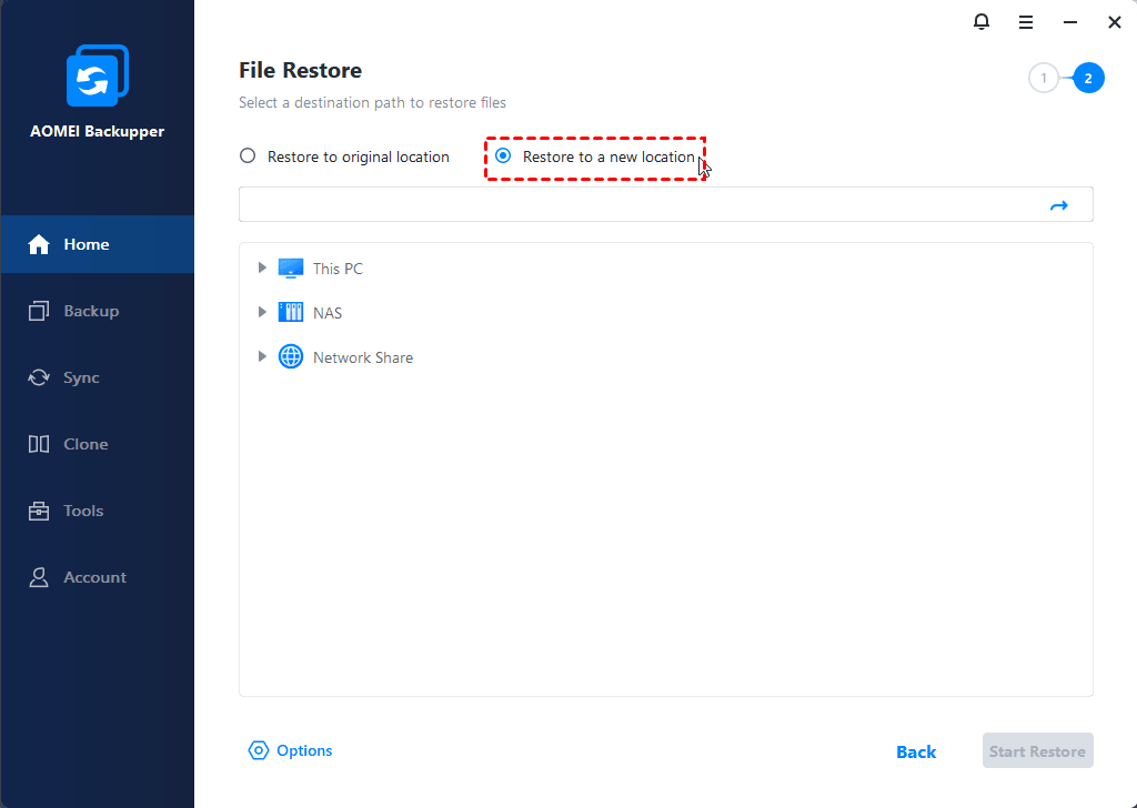 5. Choose a new location to restore your files and click Restore.
