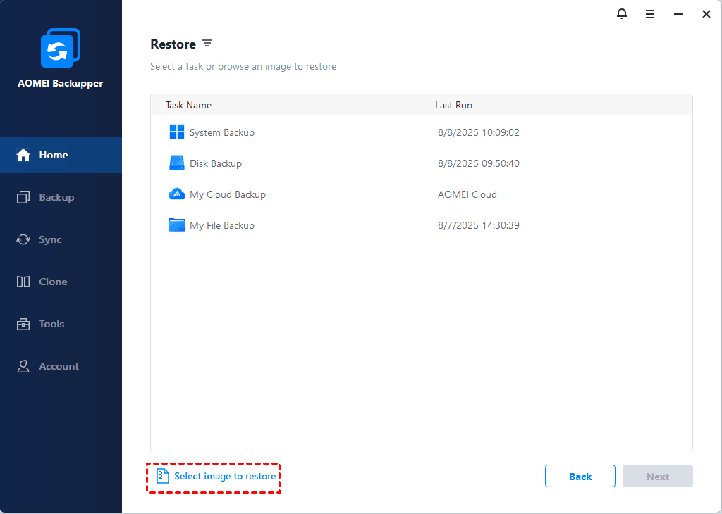If you just want to restore specific files, you could try Explore image feature. It is especially useful when you don't have a file backup. It is to mount backup in a virtual drive and let you copy files from it.
