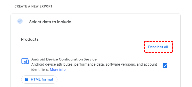 Step 1. Go to Google Takeout, click “Deselect all” and keep only the “Drive” option checked. Then, click Next.