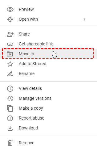 If you want to move files in Google Drive shared folder, the easiest way is to use the "Move to" option. Also, you can directly drag and drop manually.