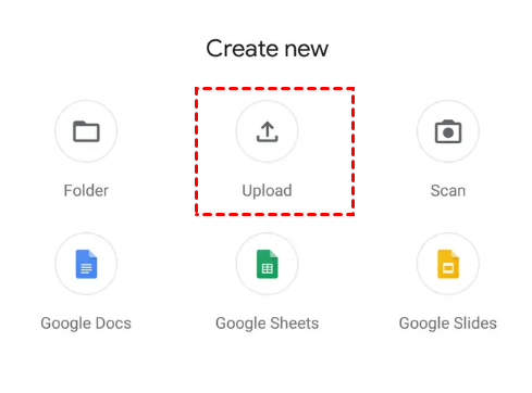 The easiest way in the Android phone is to upload files or folders to Google Drive. You can follow the steps below.