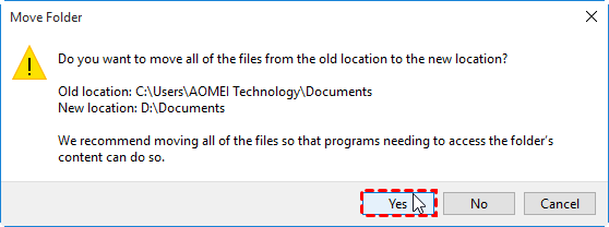 Method 2: Move My Documents folder to another drive using AOMEI Backupper