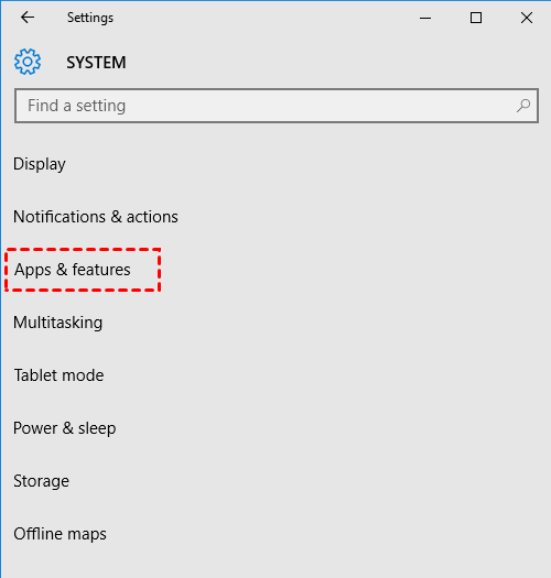 Step 1. Go to start menu > Settings > System > Apps & features, then you will see a list of programs.