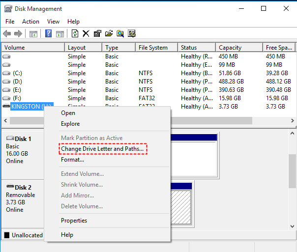 Step 5. Right-click the system reserved partition and select "Change Drive Letter and Paths", then follow the on-screen instruction to assign a letter for this partition.