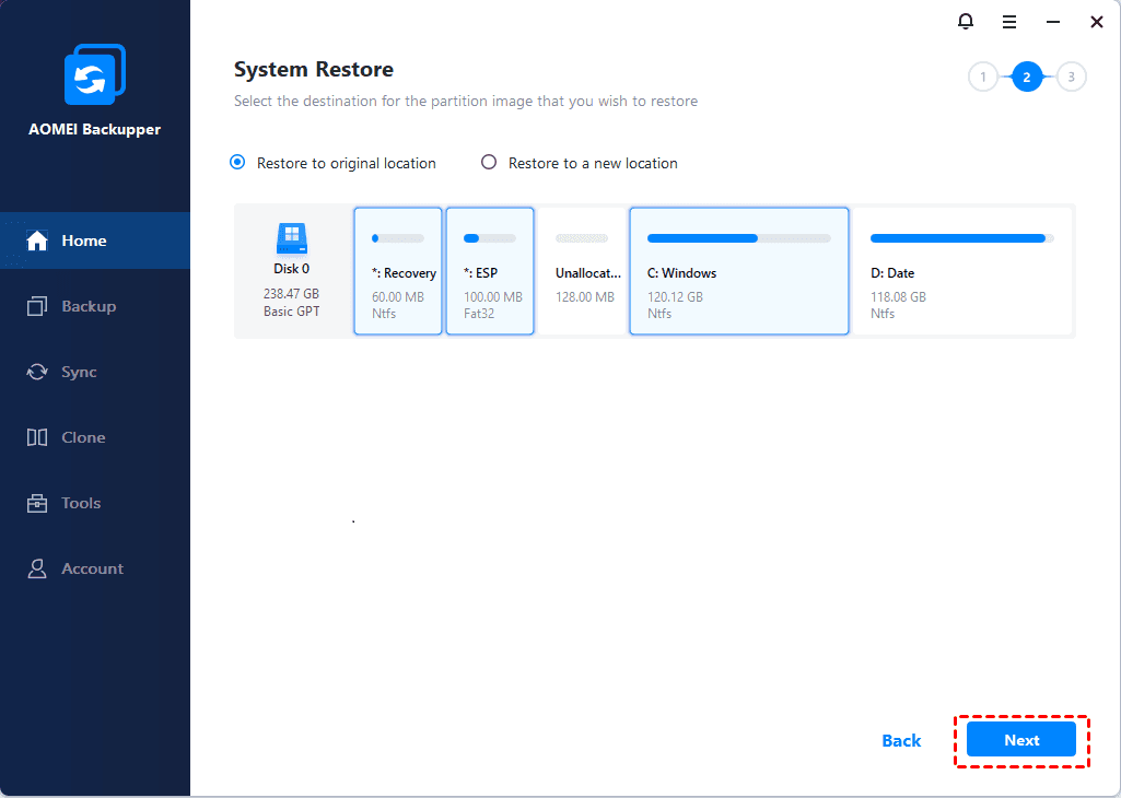 Here you will learn the second method and the easiest, which is to use the "System Clone" feature in AOMEI Backupper Professional to copy system reserved partition completely.