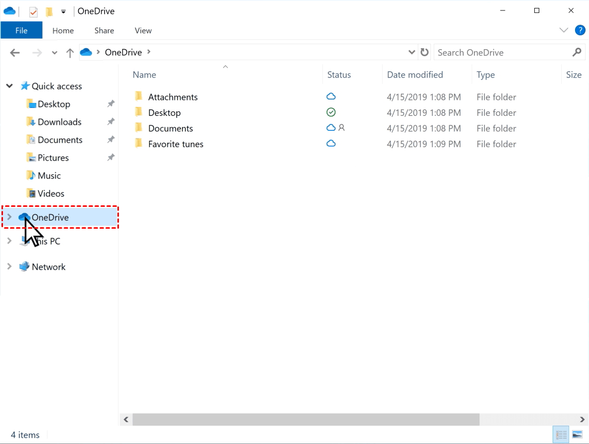 5. If you want to backup other files or folders to OneDrive, just click Open folder showed in step 1 to open File Explorer, and you can copy and paste them directly or drag and drop them to the OneDrive folder. It will be automatically uploaded.