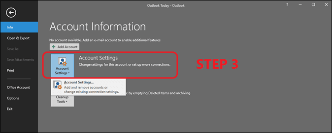 Step 1. Launch Microsoft Outlook. Navigate to the Account Settings again.