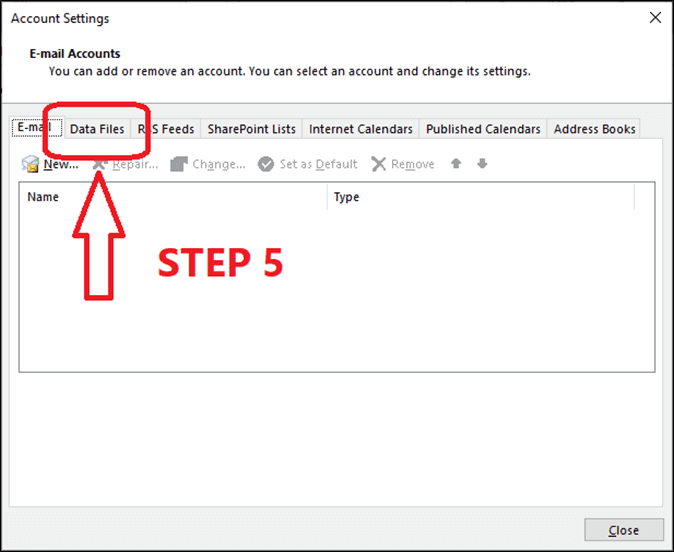 Step 5. Within the account settings, navigate to the Data Files tab.