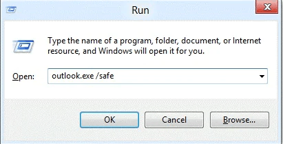 1. Launch the Run command box by the Window+ R key, type "outlook.exe /safe" and press the OK button.