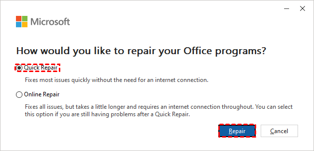 If none of the above methods were of no use for resolving email cannot connect to server in Outlook and you still face the issue, you can opt for troubleshooting Microsoft Office with the given steps below:
