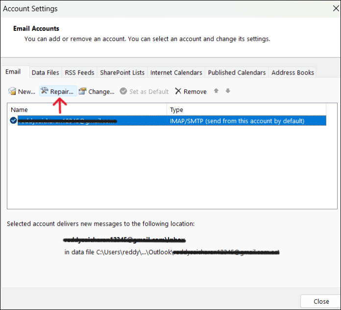 To fix Microsoft Outlook cannot connect to the server error, repairing the account you are using with Outlook is worth a try. This option works most times to fix not only connection issues but a lot of other Outlook-related problems like Outlook cannot send email.