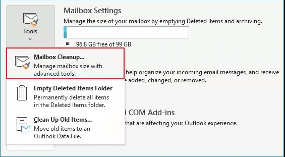 5. Review Cleanup Tools: In the Mailbox Cleanup window, check options like deleting old items, emptying the Deleted Items folder, and checking mailbox size. Adjust these settings to improve cleanup efficiency.