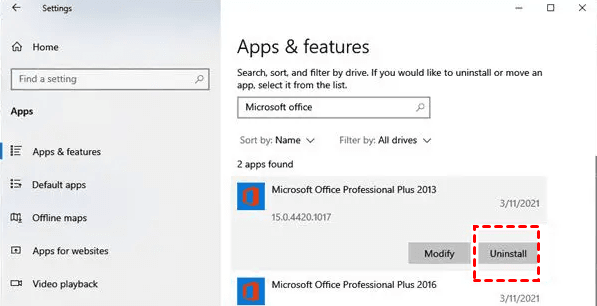 Step 4. Select the Microsoft Office desktop Apps and click on Uninstall.