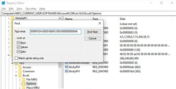 Step 7. Press F3 to repeat the search until no more registry keys are found.