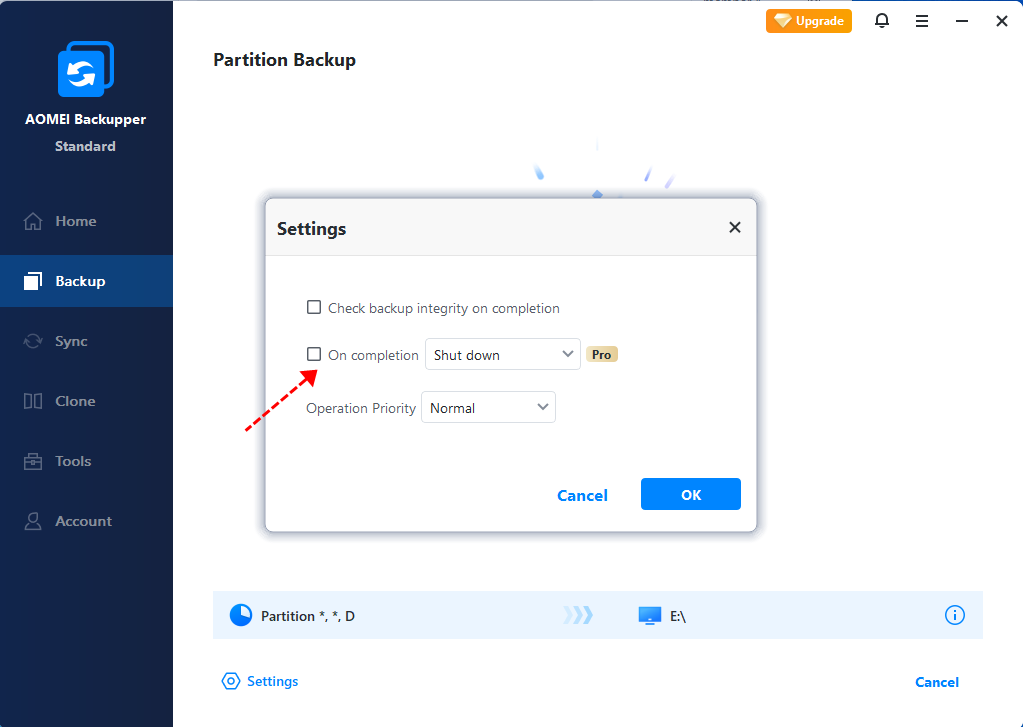 - Operation Priority: Set an operation priority for the backup. The higher the priority issue, the faster the backup will be executed.