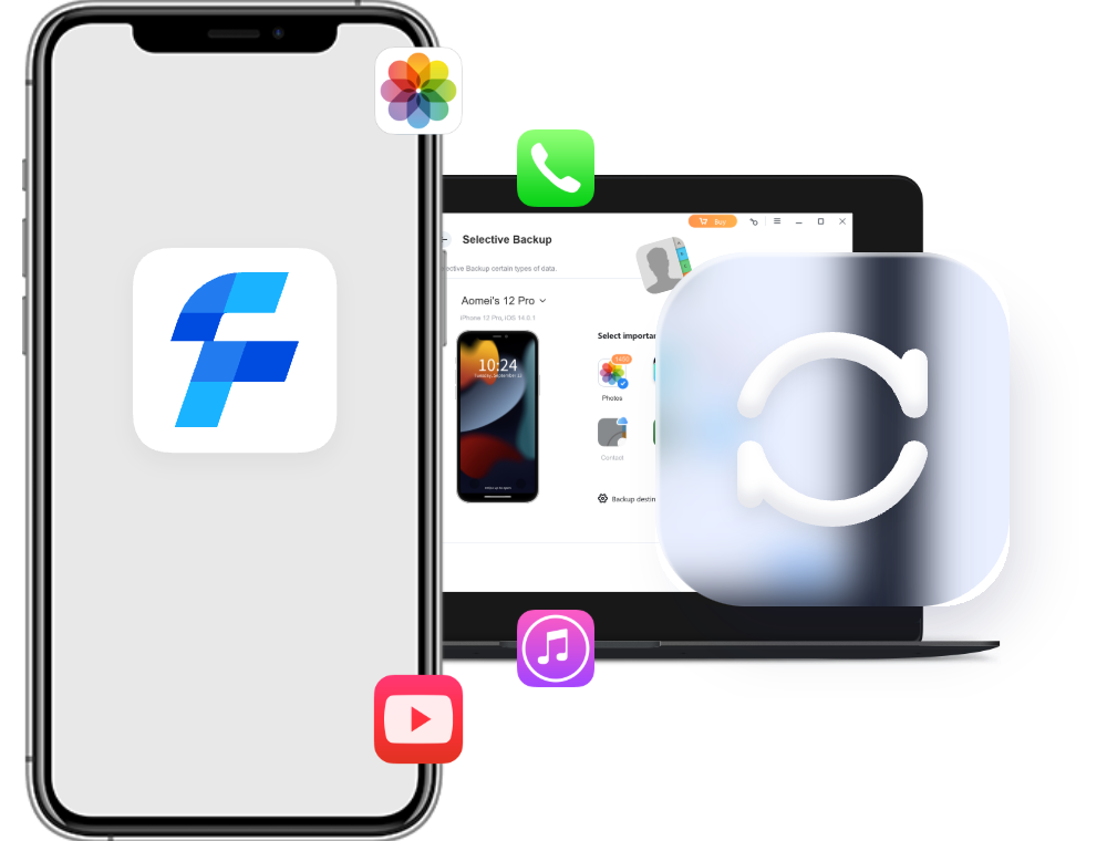 Need to backup all iPhone data? AOMEI FoneBackup helps you save all iPhone data, including media files, settings, app data.