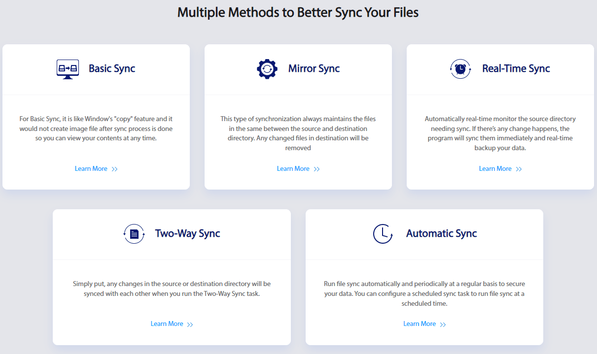 AOMEI Backupper is one of the simplest and most effective tools for real-time file synchronization. It is designed to make every step easy, with a user-friendly interface and straightforward operation. This software offers many practical features to help with everyday tasks. In addition to real-time sync, it also provides reliable backup and restore options, including system backup, disk backup, partition backup, file backup, cloud backup, and even restoring to different hardware.