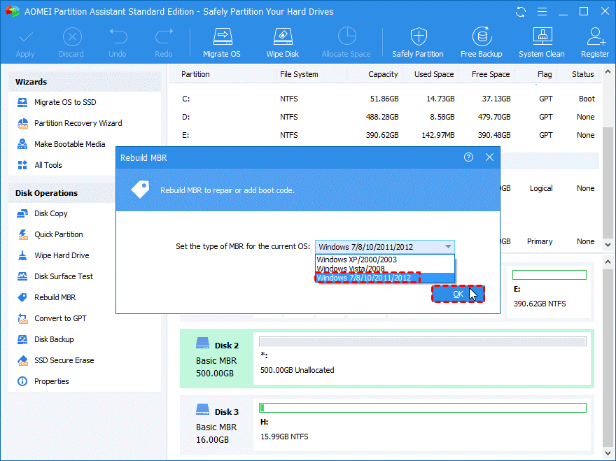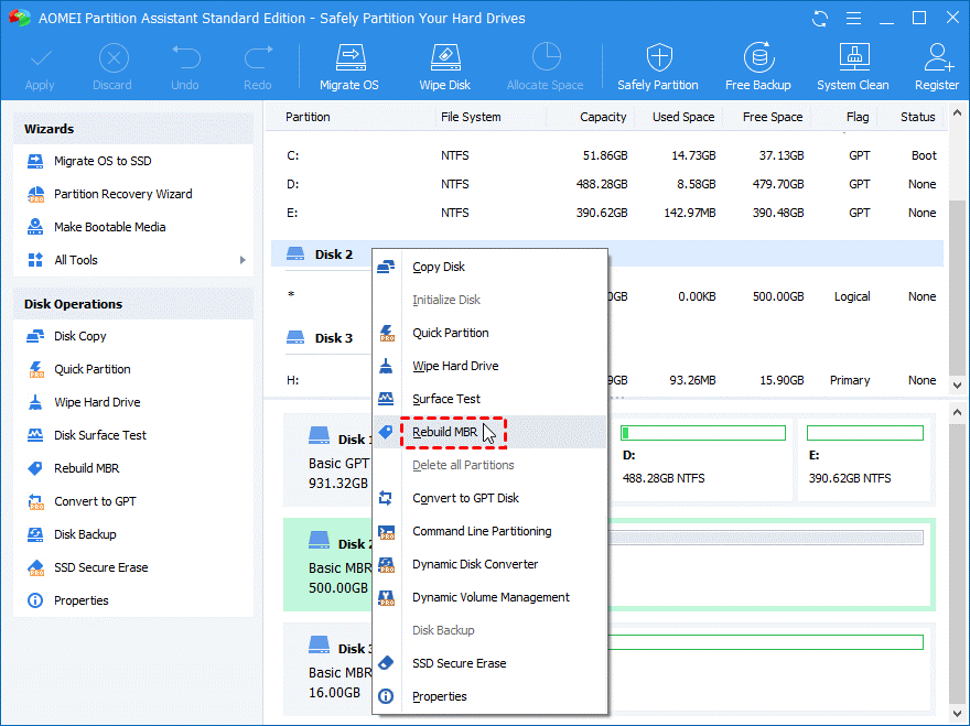 AOMEI Partition Assistant is a versatile partition management tool that can help you rebuild MBR in only a few steps.