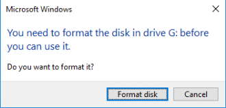 - You need to format the disk in drive E: before you can use it. Do you want to format it?”