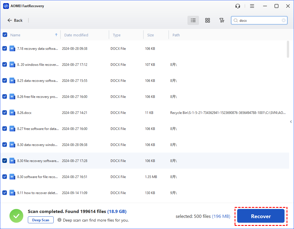 Step 3. AOMEI FastRecovery will run Quick Scan to retrieve your files. You can choose to wait or search & filter data during scanning.