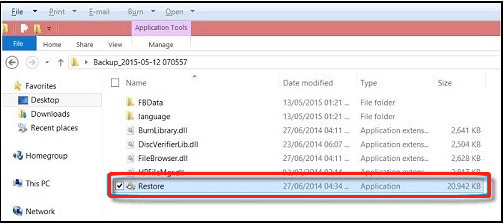 Step 1. Find and open the backup folder on your laptop. Then double-click the executable file (Restore.exe), which created during the backup process.