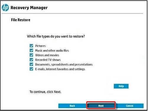 Many HP laptops come with a free application that allows HP users to backup and restore files. You've probably guessed it – HP Recovery Manager. If you have already backed up files with this HP laptop data recovery program, then you can restore them by following the steps below.