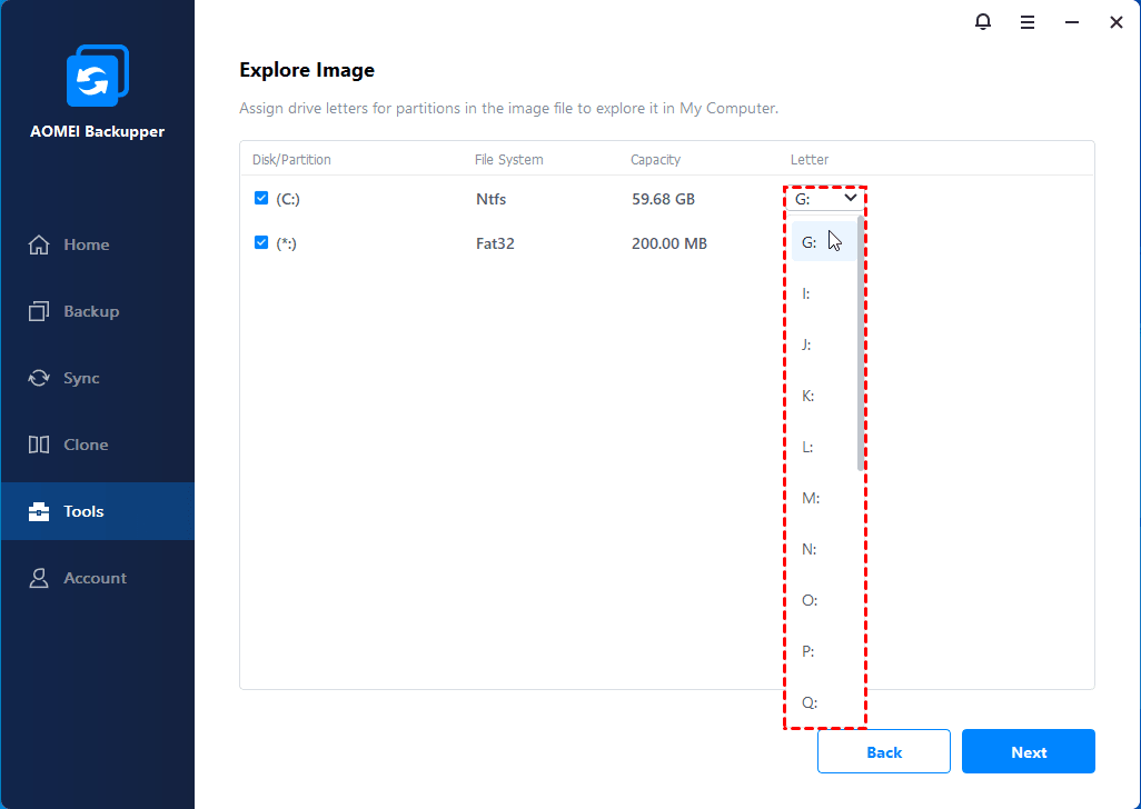 If you don't have a file backup, you can choose to restore files from other backup solutions. You will use the Explore Image feature under the Tools tab. It will assign drive letters for all the partition(s) and you can view all the data in Windows Explorer.