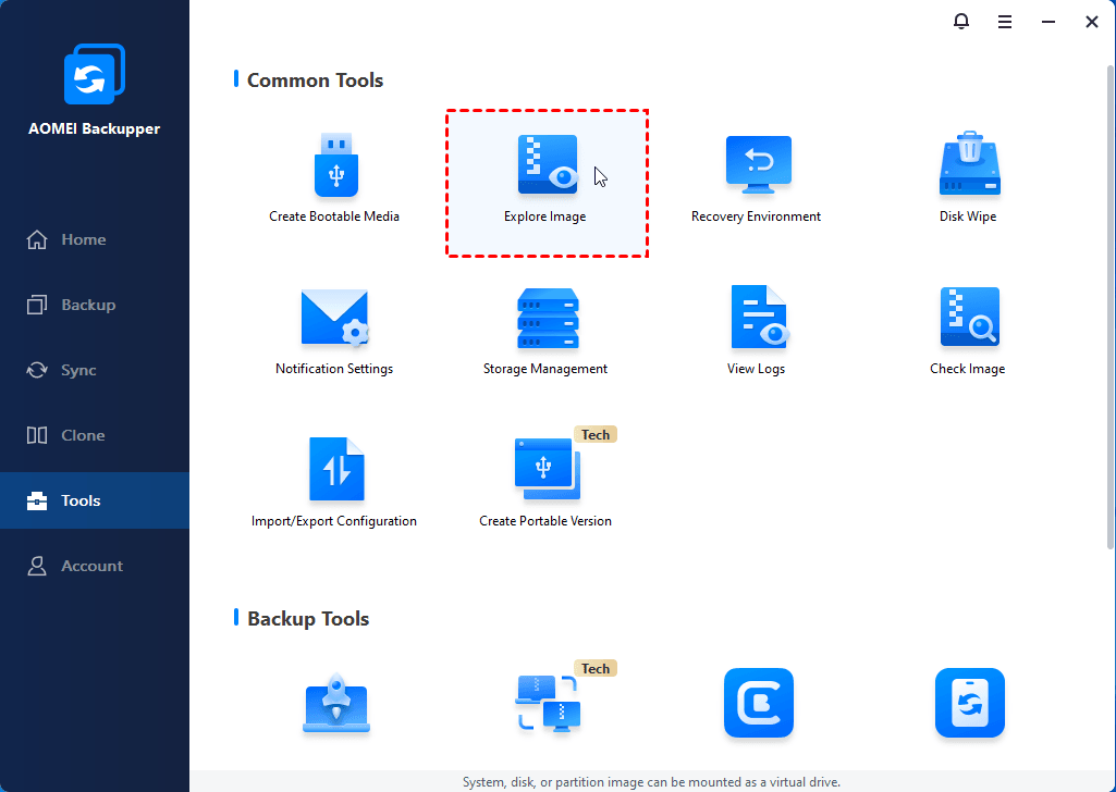 There are many other powerful features of this software, such as Clone, Sync, other tools, etc. You can use it to create bootable media to help you start your computer successfully if it doesn't boot properly.