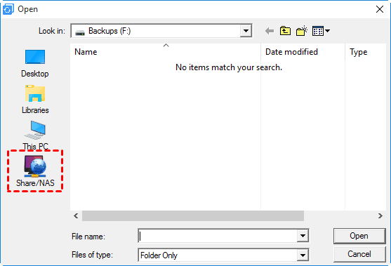 ◑ It supports backing up system, disk, partition and files to all kinds of NAS or network share, such as, QNAP NAS, Synology NAS, network share, etc.