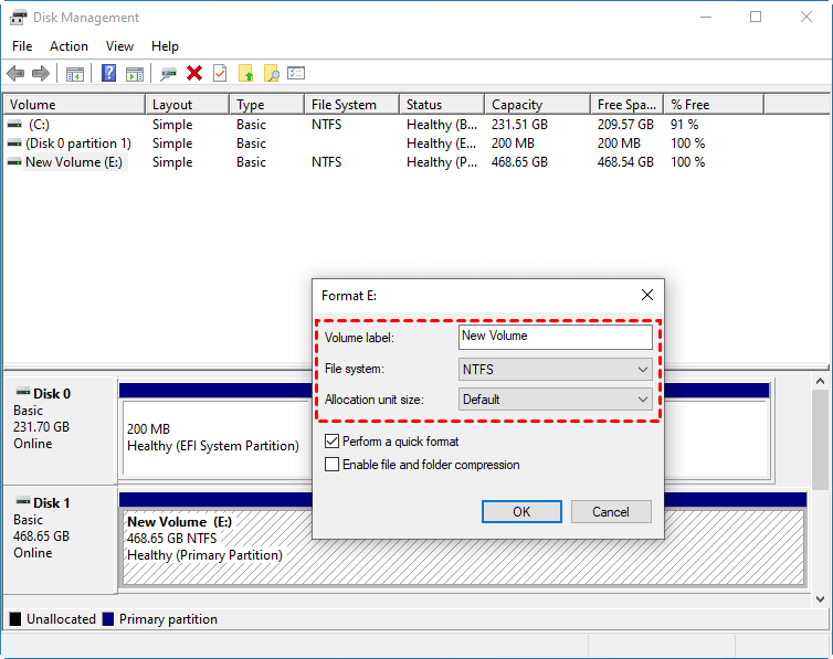 Step 3. Select a compatible file system (NTFS, FAT32, etc) and click OK to start the formatting process.