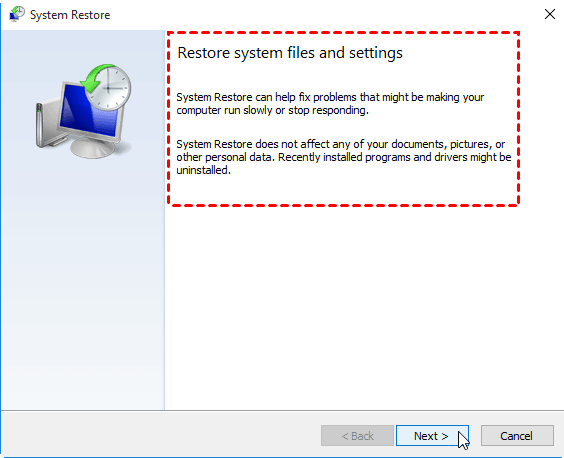 Step 4. Follow the on-screen instructions to finish the restoration. Then, restart your computer.