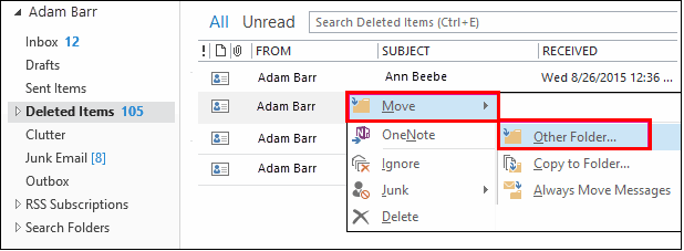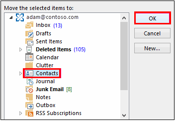 - When you find the contact, right-click it, and then click Move > Other Folder.