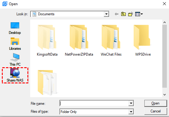 If you want to add files from network locations, click Share/NAS in the pop-up window and then Add NAS or Add Network Share to specify the path.