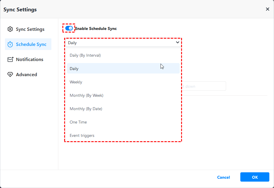Auto sync: it is embedded with the “Schedule Sync” feature that can help you sync files at fixed intervals.
