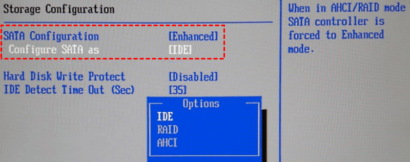 - Switch the IDE mode. If the SSD is connected via an internal SATA cable instead of a USB external connection, it is likely to be running in IDE or RAID mode. If it's IDE, you must switch it to AHCI in BIOS. If RAID, leave it as RAID and reinstall your system to make the SSD recognized by SDM.