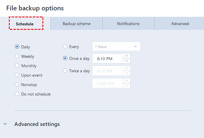 - Click Schedule Backup to choose a suitable backup frequency for your PC files.