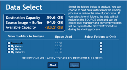 Step 3. Here you can use the Data Select tool to deselect files from cloning so that you can clone from large HDD to smaller SSD. Finally, click Start Clone to make it.