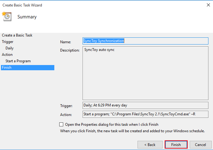 As you see, Windows Task Scheduler can assist you in SyncToy Windows 10 schedule but the process is complex. In addition, some users come across SyncToy errors like “SyncToy not copying all files”, “SyncToy failed to create folder pair”, “SyncToy access denied”, etc. Is there an easier way of automatic file sync?