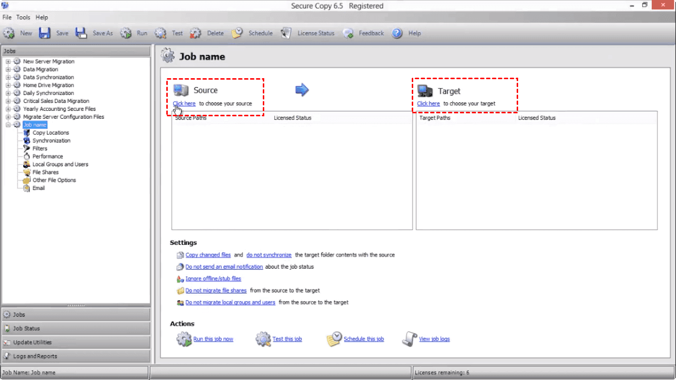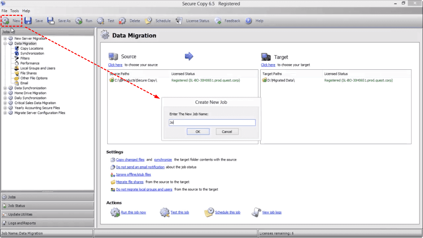1. Open Secure Copy software, click New button at the toolbar, input Job Name and hit OK.