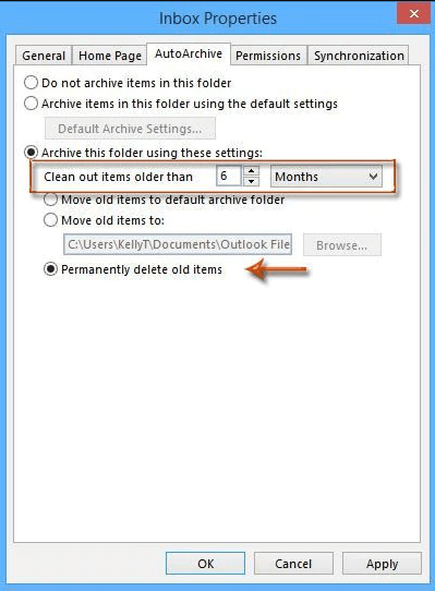 - Then select "Permanently delete old items” and click "Apply" > "OK".