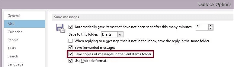 Something that can save you from trouble is to make some adjustments to Outlook's settings. There is an option to save sent items folder which, when enabled, can help you see what you have sent in your mailbox. So, if Outlook's sent items are missing, check it first.