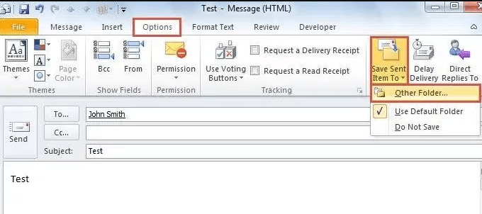 - Choose "Options" followed by "Save Sent Item" drop-down menu.