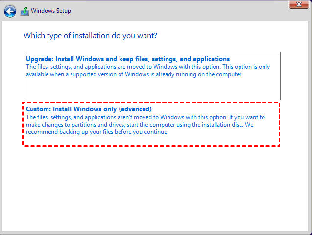 - Then click Install Now, accept the license terms, and choose Custom: Install Windows only (advanced).