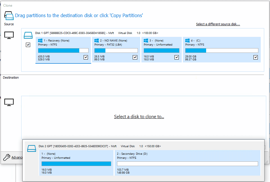 Disk Clone: It allows you to clone the entire hard drive including all the volumes on it. With it, you can easily migrate HDDs to smaller SSDs or clone SSDs to larger ones.